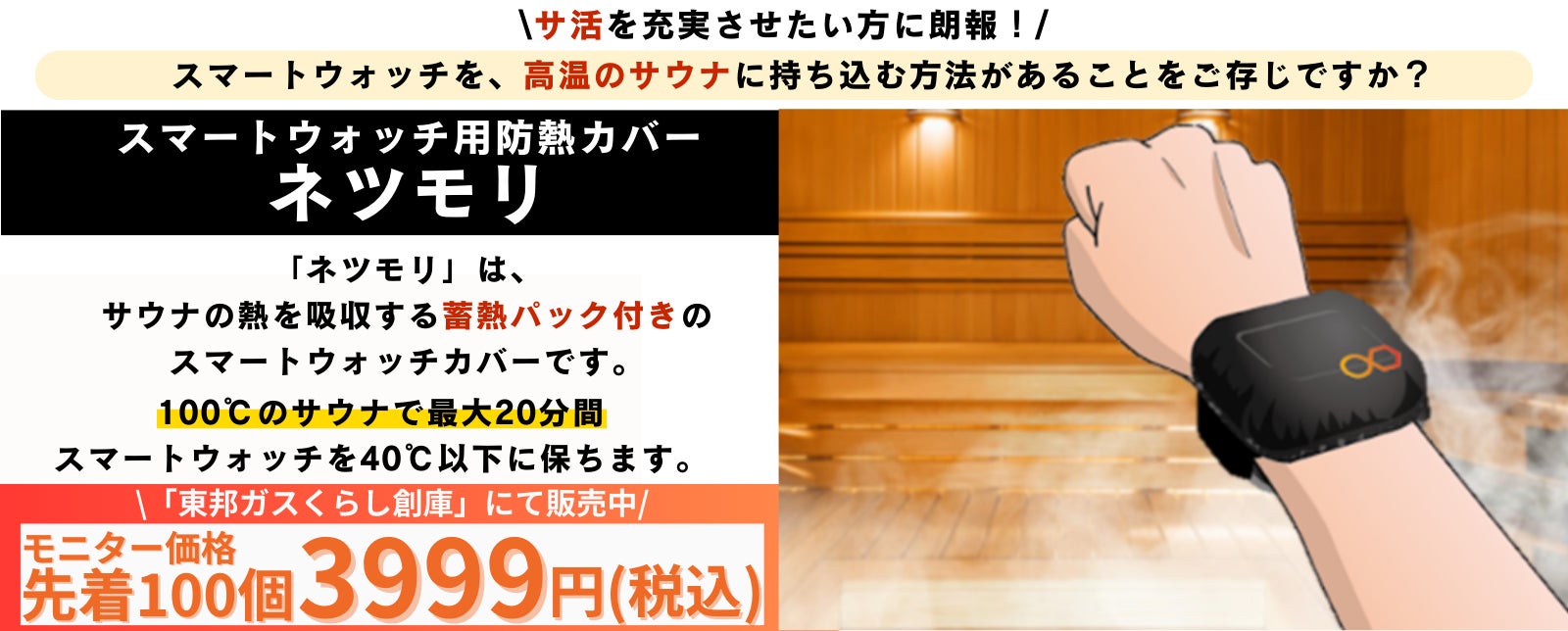 サウナ室内にスマートウォッチを持ち込める、スマートウォッチ用防熱カバー「ネツモリ」販売開始