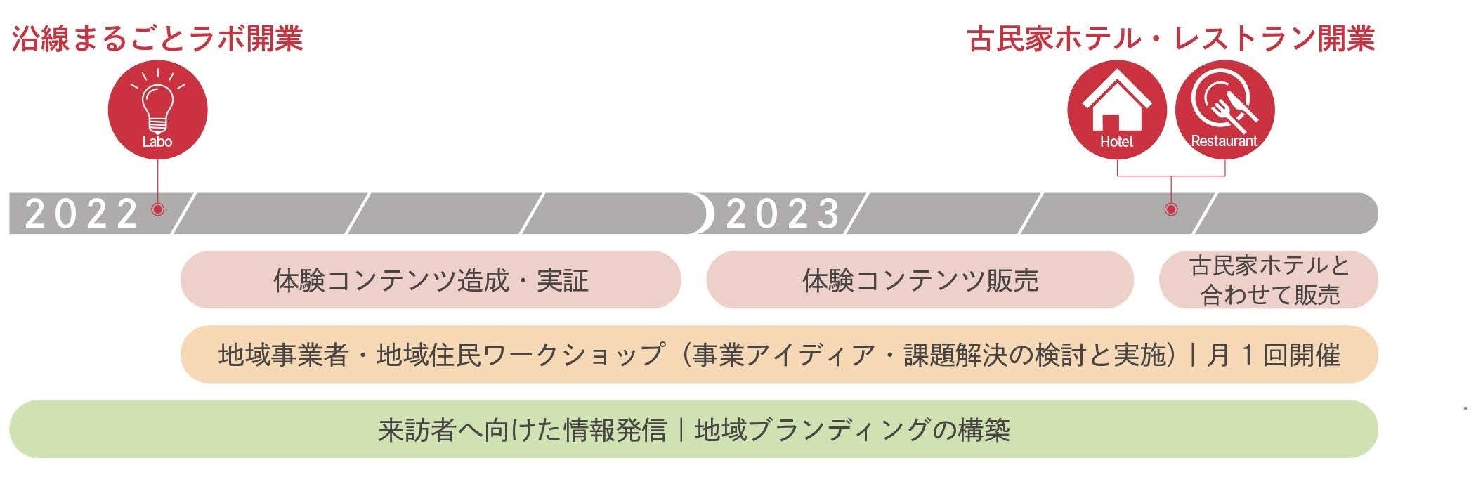 古民家ホテルや古民家レストランができる2023年度内には10名以上(企業・団体や住民)の沿線まるごとコンシェルジュと手を組み、沿線地域を五感で触れる体験型コンテンツをインバウンド顧客も含む国内外のハイグレード層をターゲットに造成・販売していく予定です。