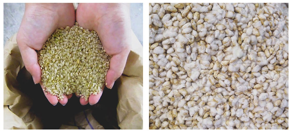 オーガニック玄米を麹と酵母で発酵させた「米もろみ粕」や米ぬか油などの“お米の恵み”と、資源循環から生まれた岩手県産ヒマワリ種子油をはじめ、椿、茶、ホホバ、オリーブなど、植物の実や種 から得られた“植物の恵み”を