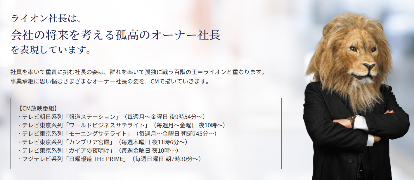 人気のライオン社長のCMを新たな提供テレビ番組で放映開始いたしました!