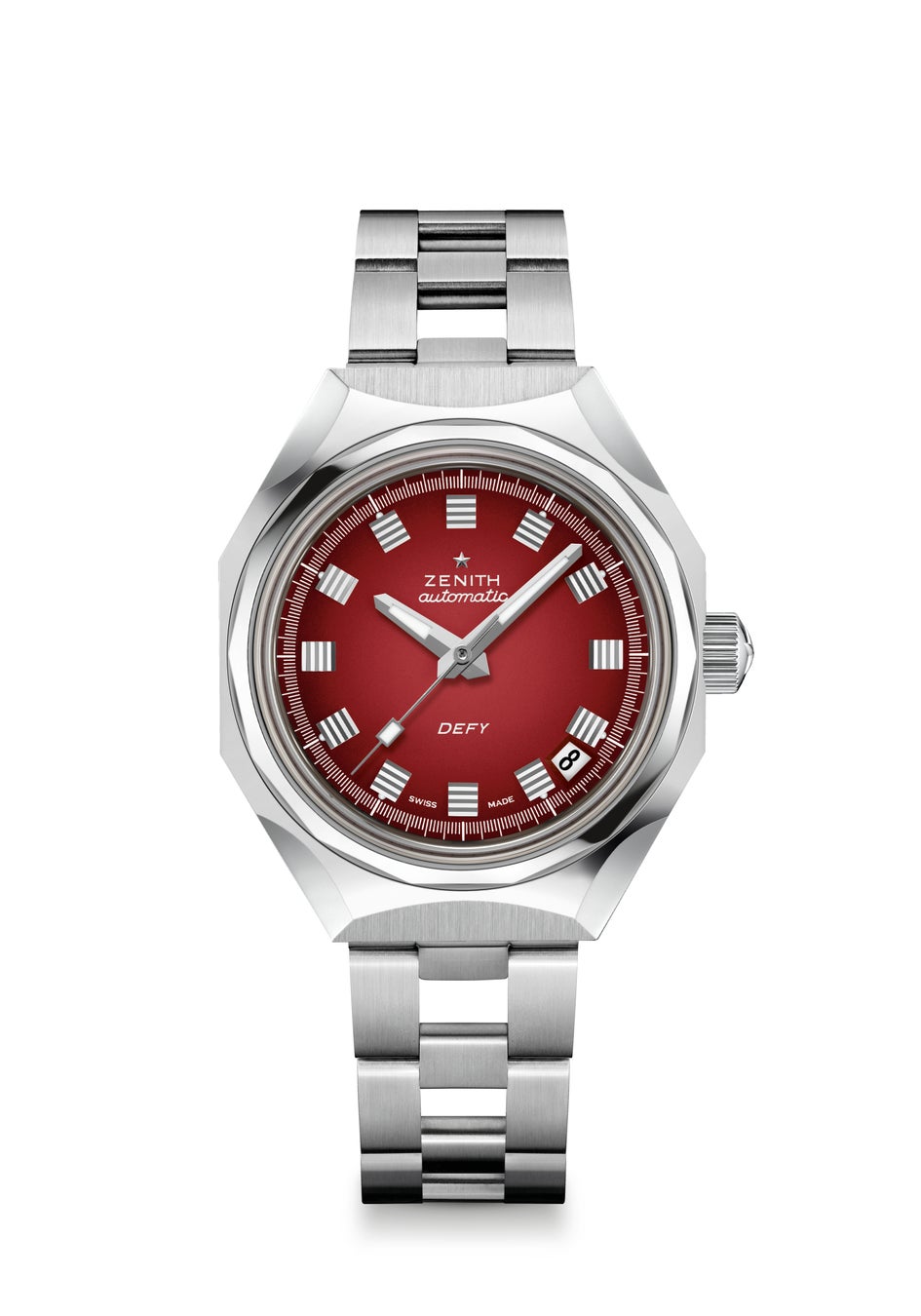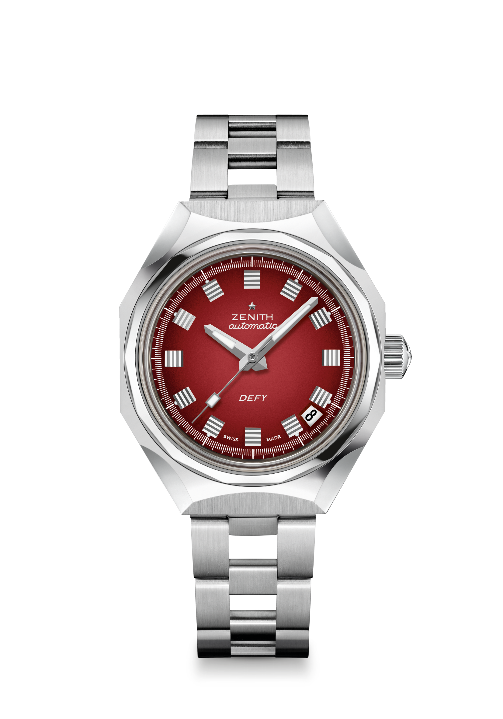 ゼニスは、デファイ コレクションの本質と、同名の現代的なコレクションのインスピレーションの源であり続ける歴史的なモデルに立ち返り、1971年のモデルをベースにしたA3691をリメイクしたデファイ リバイバルの第2弾モデルを発表します。鮮やかなレッドのグラデーション文字盤と堅牢で幾何学的なフォルムのケースを持つ デファイ リバイバル A3691は 、デファイ リバイバル初の継続的に製造をするコレクションとなるモデルです。