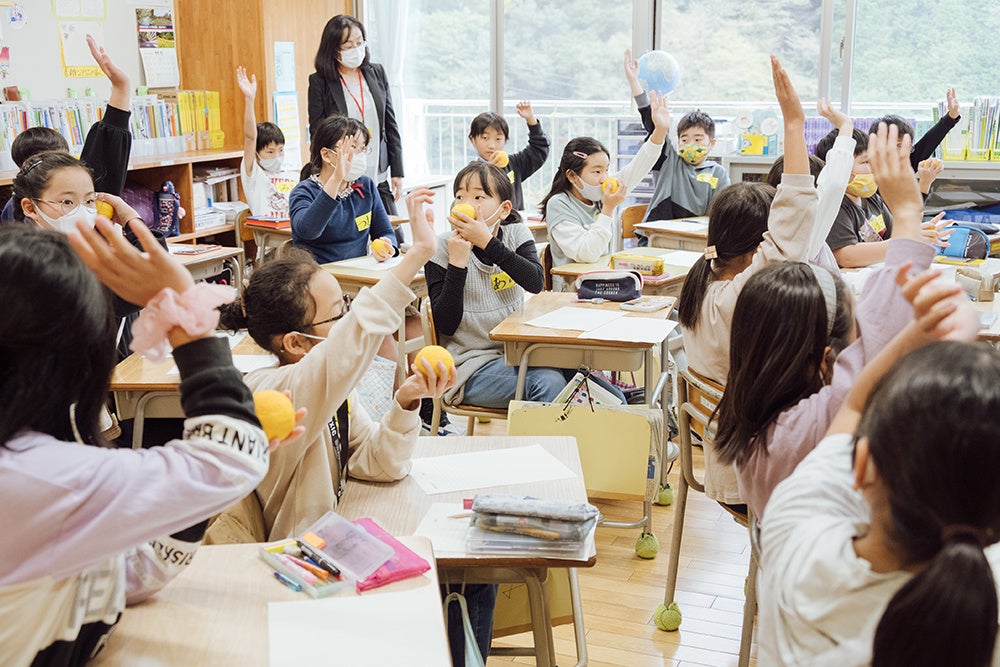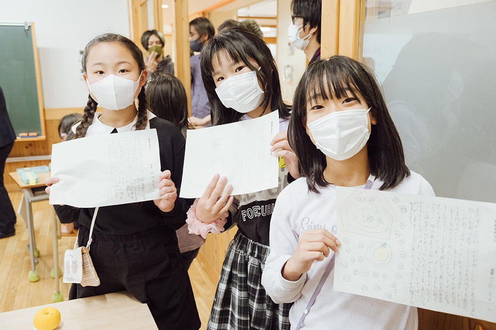 小さい頃から毎日ゆずに触れている子供たちにとって、このような授業をきっかけにゆずの魅力が再発見できるのは素晴らしいですね。私も物語を創ったのですが、文を書くのも絵を描くのも久しぶりでした。子供たちの発表を聞いて、どうして子供たちってこんなに脳が柔らかいんだろうと。大人だと、生活上、自然をゆっくり見ることができない人が多いと思うのですが、大人にとっては自然を感じるのは唯一無二の時間だと思います。また、自然を感じると、脳が軽くなる感じがして、嗅覚も刺激されます。香りというのは、見る・聞くよりもダイレクトに脳にくるものだと思うので、すごくいいなと思いました。ゆずは色を連想するときが面白くて、不思議と「水色」「白」が浮かんだんです。それは子供たちも同じで、共通する感覚を共有できました。