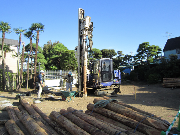 ・養生期間が不要なので丸太打設後すぐに次工程に入れます。