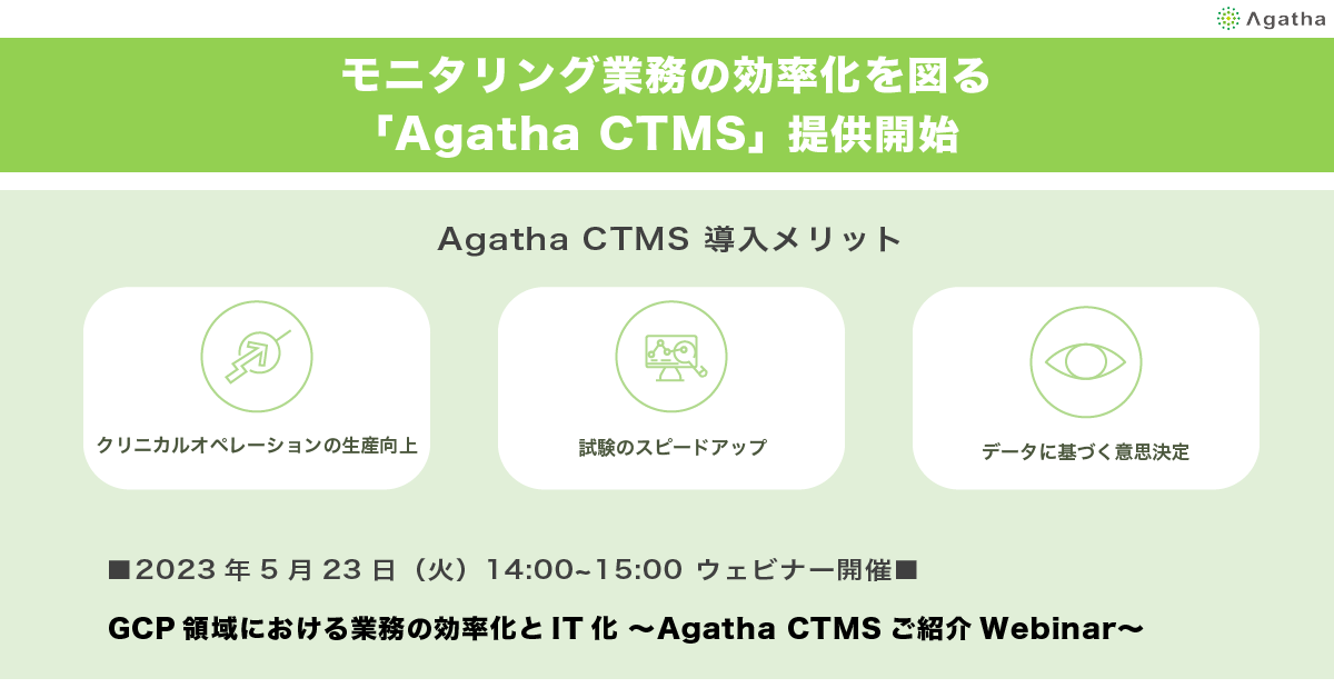 Agatha CTMSの提供開始に伴い、2023年5月23日(火)に活用事例をご紹介するウェビナーも開催します。