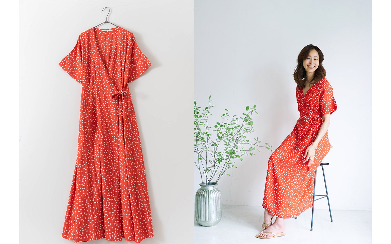 今回のコラボレーションで山城さんがテーマにしていたのは、日差しが強い夏のバカンスシーンでも一枚で着てリラックスできるデザインで、かつシンプルで長く着られる服。幼く見えないよう、トーンを細かく調整した赤色が太陽の下でよく映えます。