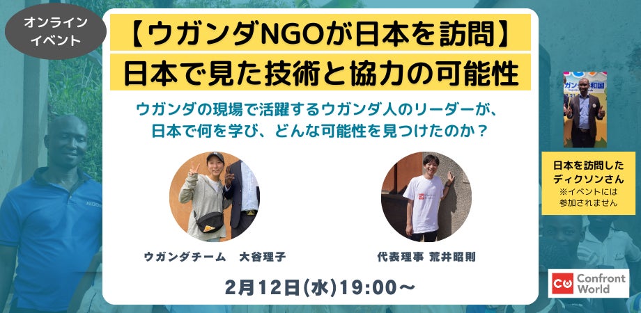特定非営利活動法人コンフロントワールド(代表理事:荒井昭則)は、ウガンダの農村部で水衛生支援を行う現地NGO「JEDOVC」の代表、ディクソン氏の訪日に関する報告イベントを開催いたします。