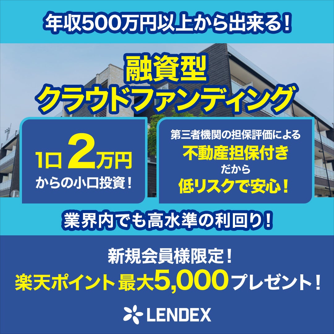 楽天ポイント最大5,000ポイント!ソーシャルレンディング最大級の還元キャンペーン「LENDEX」新規投資家限定