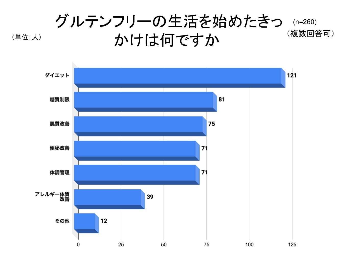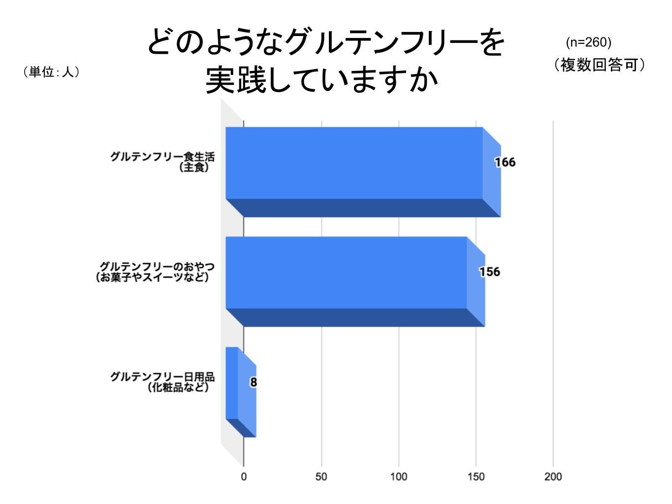 - 本アンケート対象者:グルテンフリー生活を実践している(していた)全国の男女260人
