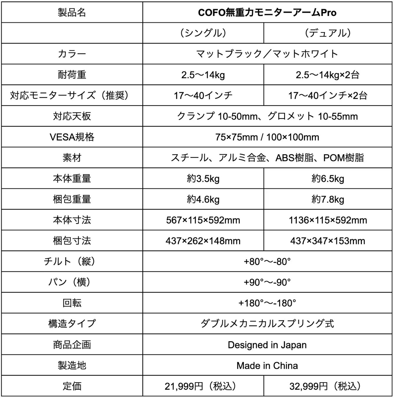 「COFO無重力モニターアームPro」製品詳細ページ:https://cofo.jp/products/monitorarm-pro