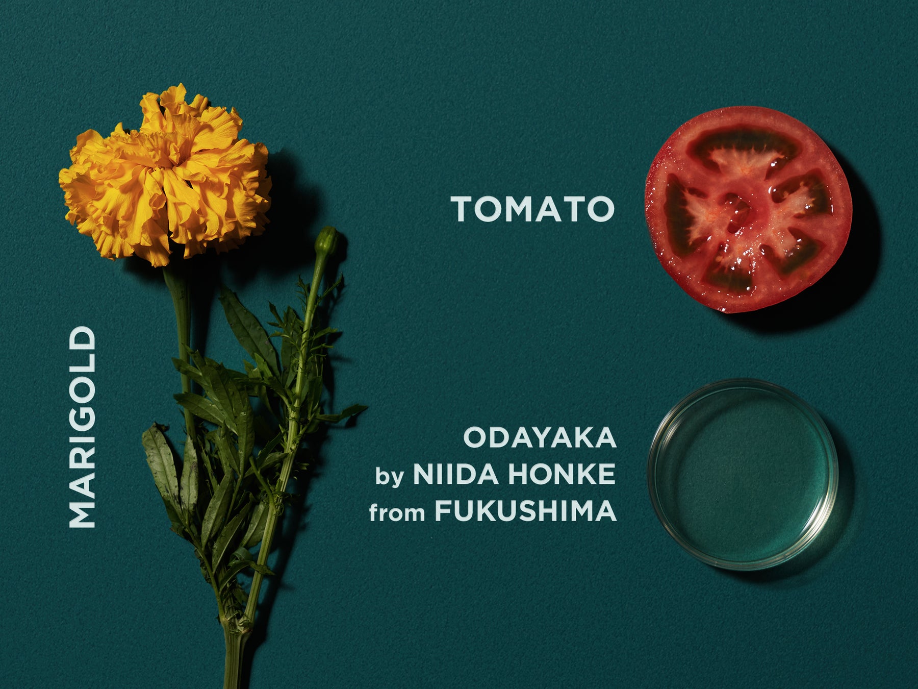 原料供給者 :福島県いわき市 ワンダーファーム(トマト)/ 宮崎県仙台市荒浜区 平松農園(マリーゴールド)