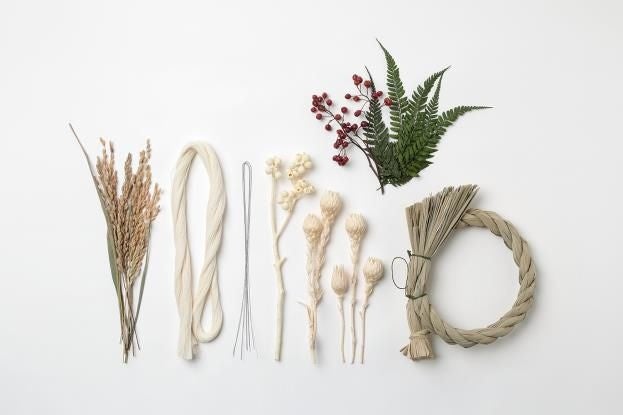 オーガニックコットンの水引がアクセントの”しめ飾り”を、ご自宅で作れるキットでご用意いたしました。水引というと、和紙でつくられているものが一般的ですが、私たちは経糸整経の工程で出る糸の残りを水引にしました。オーガニックコットンの水引として生まれ変わった糸が、職人と作り手の心と心を結ぶ素材としてお届けできることを願っています。
