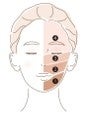 あご先〜耳下、小鼻〜耳元、目元~こめかみの順で、ポンポンとスタンプを押すようにファンデーションを塗ります。その後、パフに残ったファンデーションで額や、細かな部分を仕上げてください。