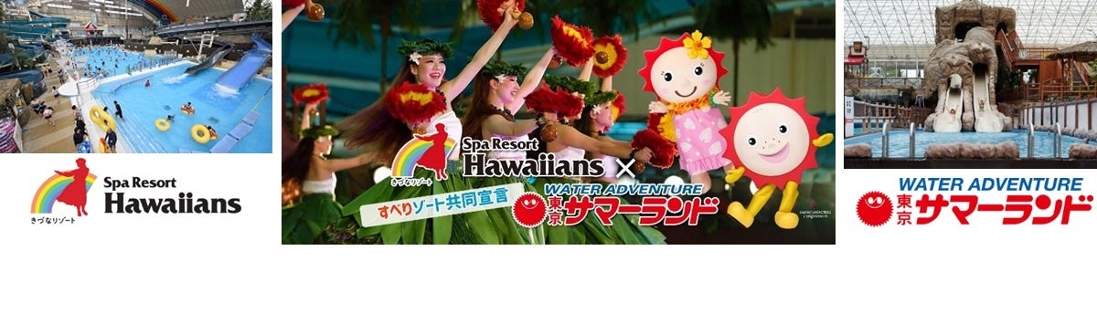 この『すべりゾート共同宣言』は、7月1日から日本最大級の二大レジャー施設が協力して暑い夏を盛り上げるコラボレーション企画で、共に「多彩なウォータースライダーなど水遊びが豊富」なスパリゾートハワイアンズと東京サマーランドが、従来以上に楽しめる水遊びを提供し、より一層リゾート感を楽しんでいただける施設を目指して掲げるものです。