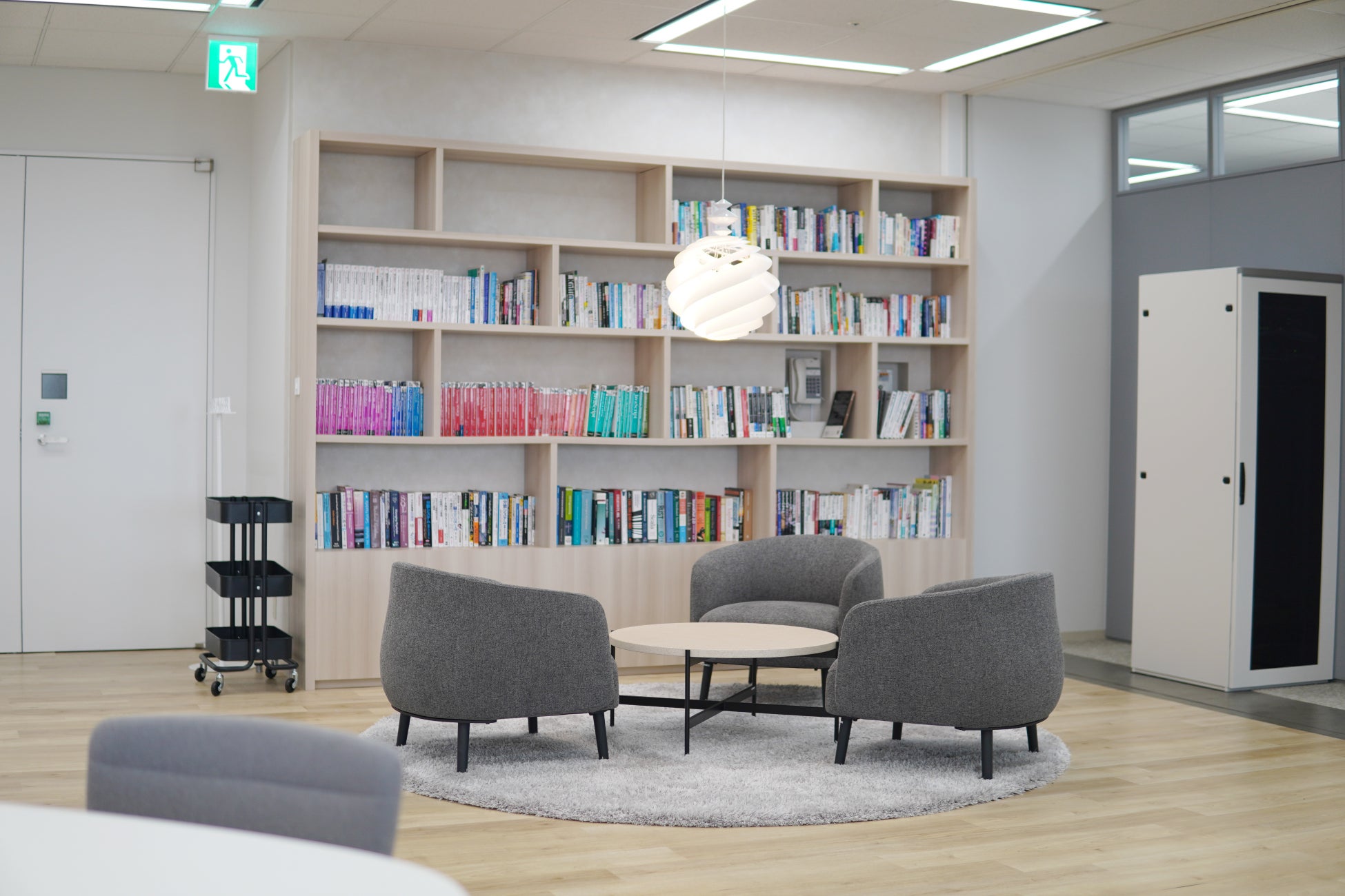 新オフィスは、社員が一体感を持ち、部門を横断した連携を促進するための「学びと共創の拠点」としてデザインされています。お客様の複雑な課題を解決するイノベーションは、多様な専門性を持つプロフェッショナル同士の偶発的な対話や議論から生まれると考えています。