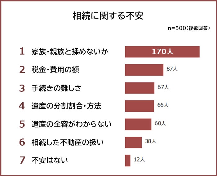 - 相続に関する不安1位は「家族・親族と揉めないか」