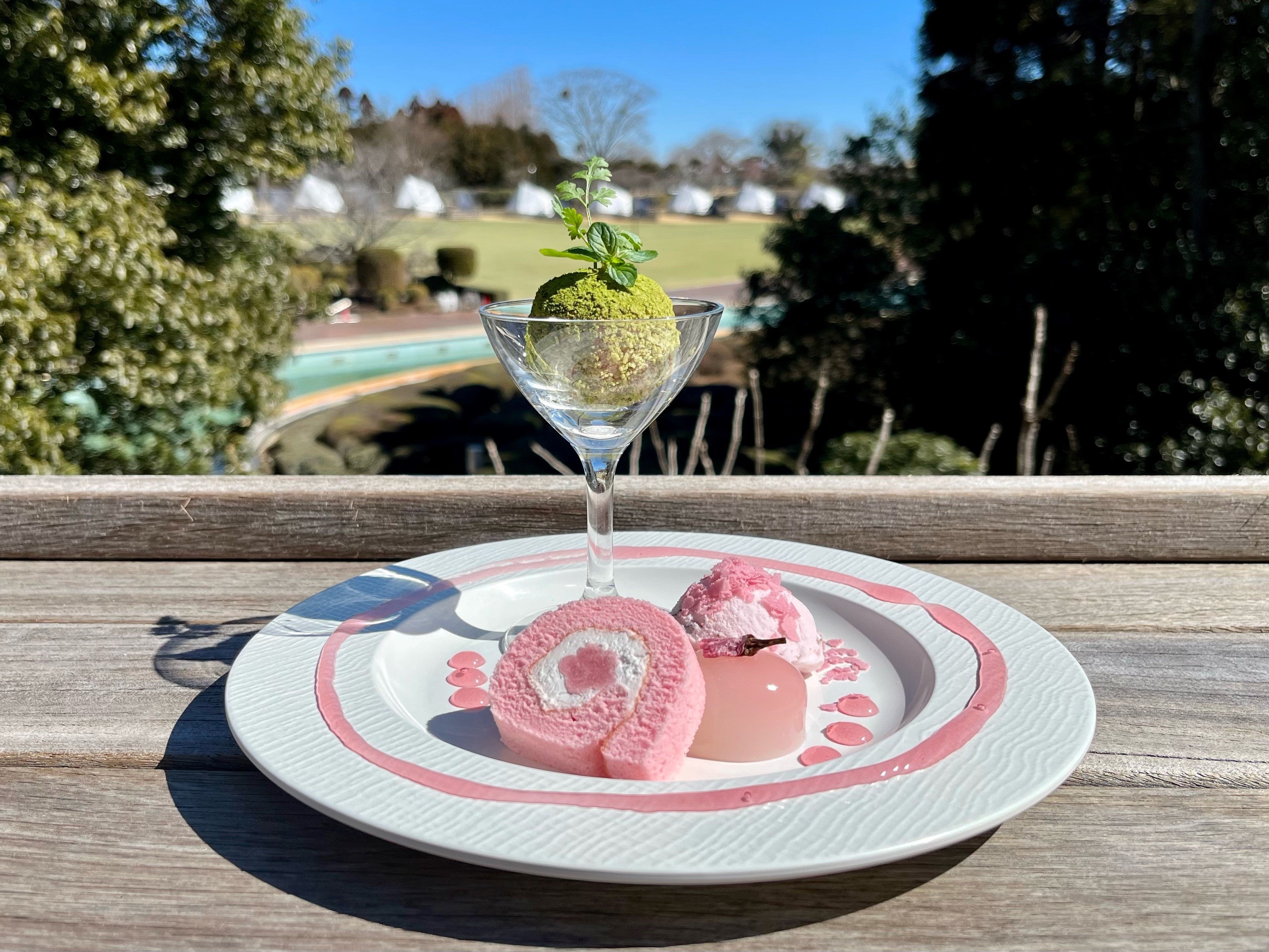 植物が芽を出し花を咲かせる春の季節を表現した、華やかな桜と抹茶のコラボレーションスイーツです。さくらスイーツは、桜あんのロールケーキ、桜の葛まんじゅう、桜のアイスの3品。ロールケーキの中の春らしいピンク色に心が躍る桜あんは、見た目も桜の形に仕上げており、SNS映えもばっちりの一品です。苔玉スイーツは、中にいちごジャムを入れ込んだスポンジに抹茶パウダーで仕上げた、苔玉のように丸い形に仕上げた抹茶のケーキです。春の陽ざしが心地よいグランヴォーカフェのデッキテラスで、色鮮やかな期間限定の春スイーツをお楽しみいただけます。