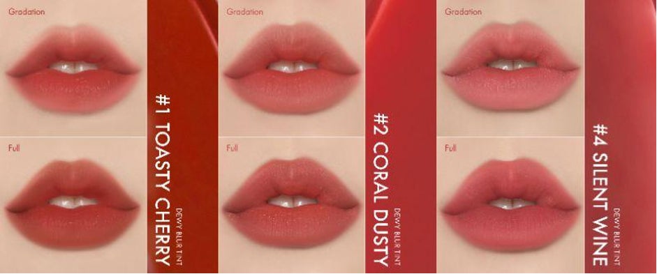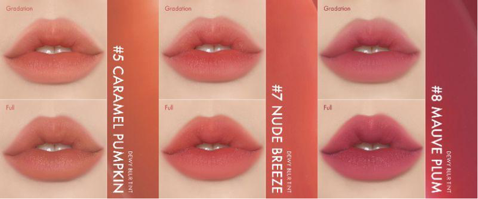 大人っぽさのあるカラー展開とティントらしい落ちにくさで人気の「クリオ デューイ ブラー ティント」。今回日本でオフライン販売するのは全6色。クリアなチェリーにダークを一滴入れたレッドカラーの「01トースティー チェリー」、透明感のあるレッドにコーラルを加えた「02コーラル ダスティー」、クールなワインカラーにベージュをミックスした「04サイレント ワイン」、落ち着きのあるパンプキンカラーの「05 キャラメル パンプキン」、ほんのり白味のあるヌードコーラルピンクの「07 ヌード ブリーズ」、雰囲気のあるモーブトーンのプラムピンク「08 モーブ プラム」です。