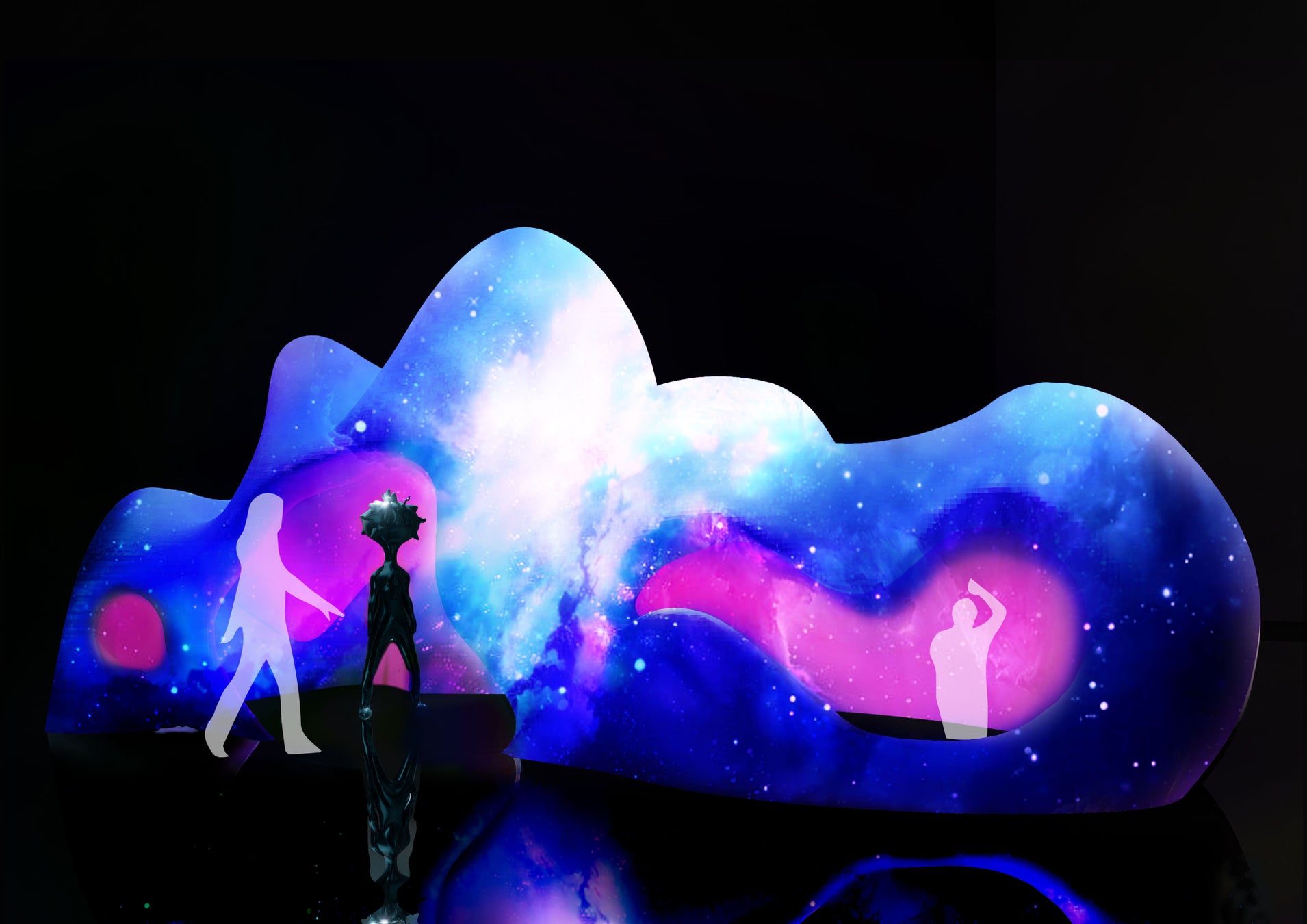 AAは、自ら言葉を話すのではなく、会場全体の空間を媒介とし、来場者の動きや感情に反応して交信を行います。そのため、来場者はAAとの交信を通じて、まるで未知の知性体と精神的に繋がるような、深く没入感のある体験を味わえます。