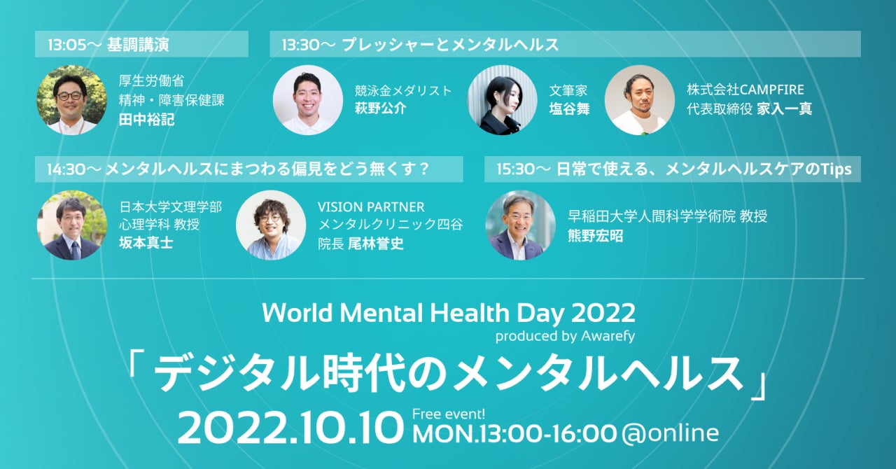 そこで、10月10日の「世界メンタルヘルスデー」に際し、メンタルヘルスについての理解を深めるカンファレンスを開催いたします。