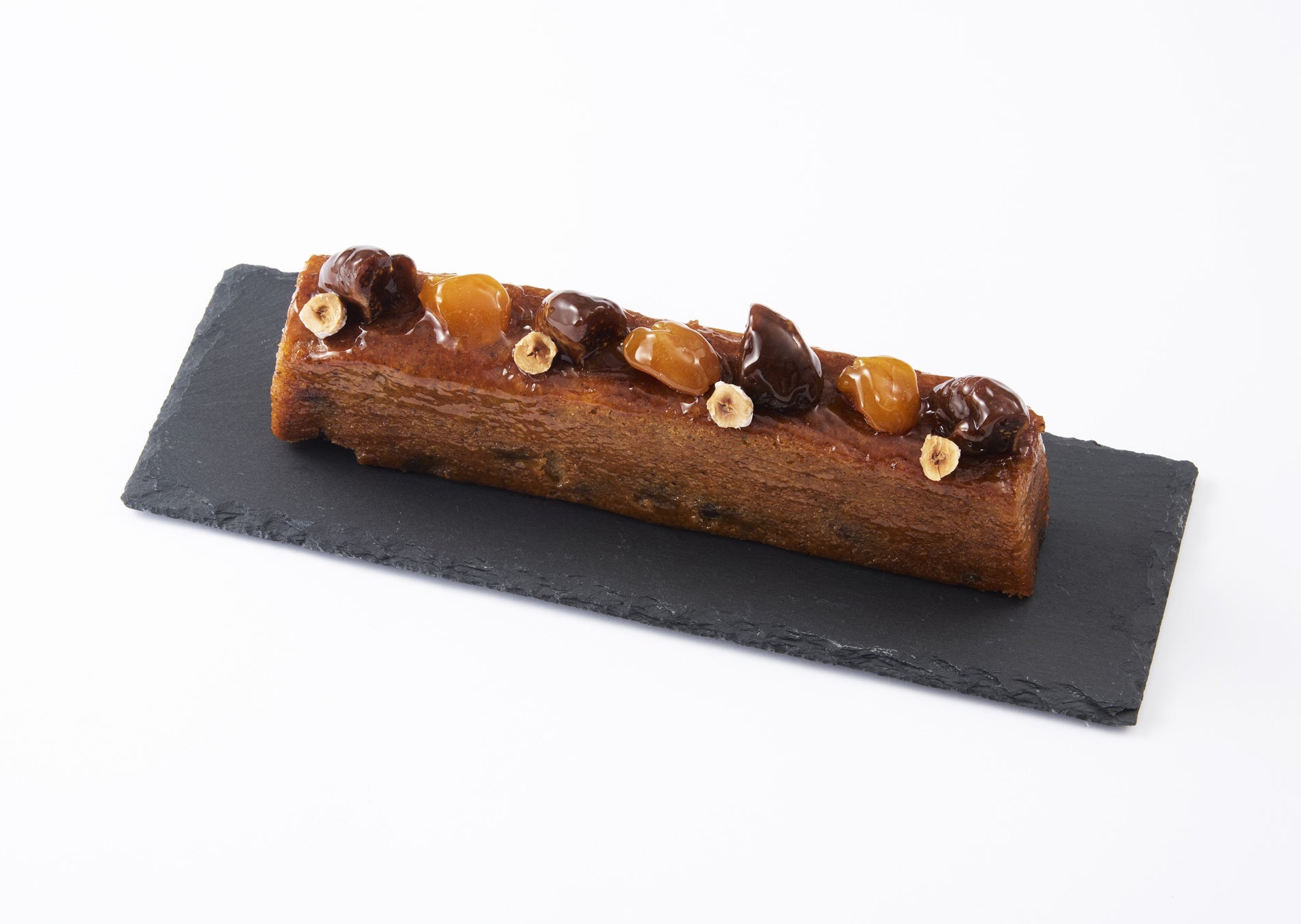 発酵バターとクリームチーズを生かしたいちじくのパウンドケーキです。埼玉県加須市の白いちじくを赤ワインで漬け込み、刻んで生地の中に。自社養蜂の原宿はちみつ、平飼い卵、埼玉県産小麦粉、奥飛騨の山椒と、国産原料にこだわりました。原宿はちみつのジュレと山椒がアクセントで、「そよかぜ」のような爽やかさが口の中に広がります。