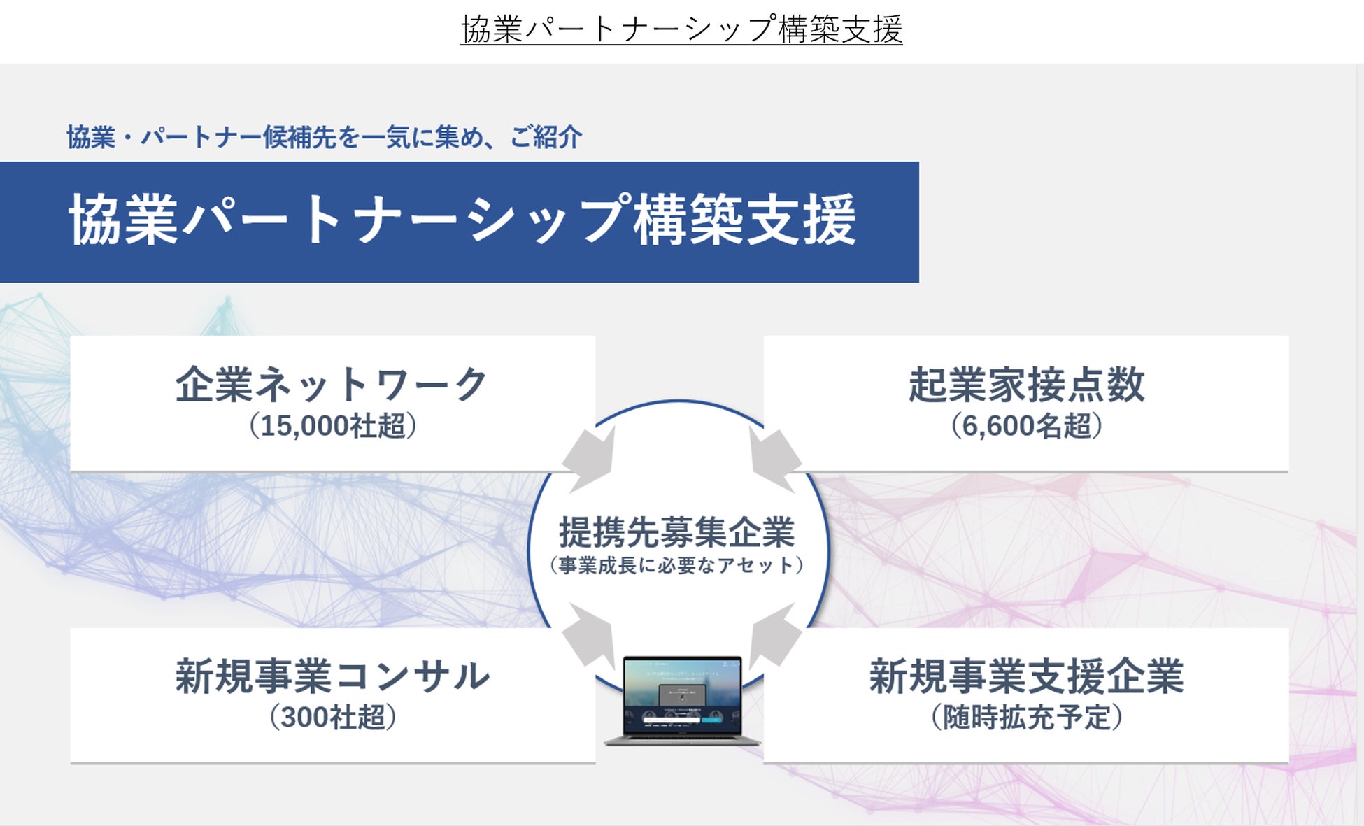 事業推進において外部連携を検討する局面では、協業・パートナー候補先の評価やコミュニケーション、社内承認など様々なハードルがあります。本プログラムではそのような課題解決の手段として、協業・パートナー候補先の提案をサポートします。大企業・スタートアップとの繋がりが強いジャフコと、幅広い業界業種・テーマに精通したコンサルタント・有識者を束ねるCo-nnect Inc.のお互いの強みを掛け合わせ、伴走いたします。