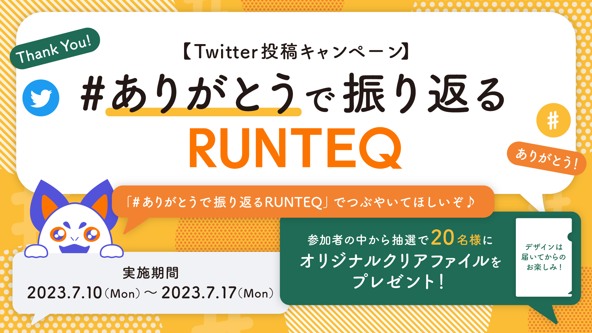 ・2023年7月10日(月)〜7月17日(月)までの間にTwitterのハッシュタグ「#ありがとうで振り返るRUNTEQ」を使用して、RUNTEQとの思い出を振り返るツイートを投稿