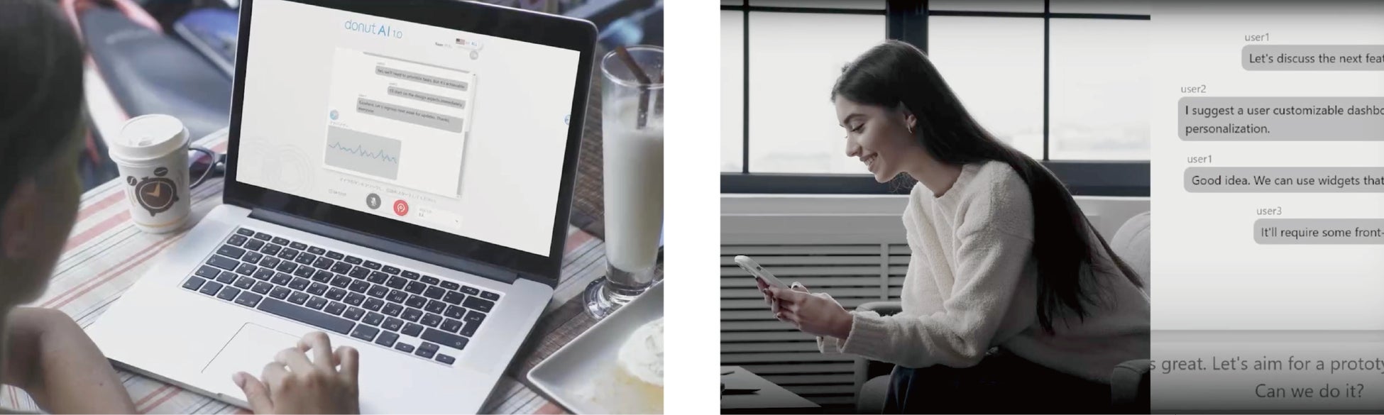 「 donut AI(議事録 ver.)」は、カメラやWebと連動し、AI が人の仕事をアシストしていく機能の搭載を目指しています。