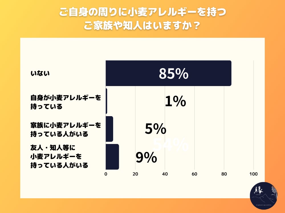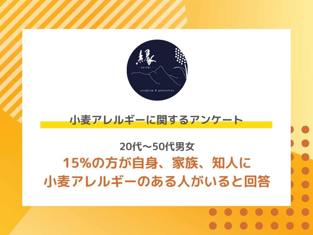 20代~50代男女 15%の方がご自身、家族、知人に 小麦アレルギーのある人がいると回答
