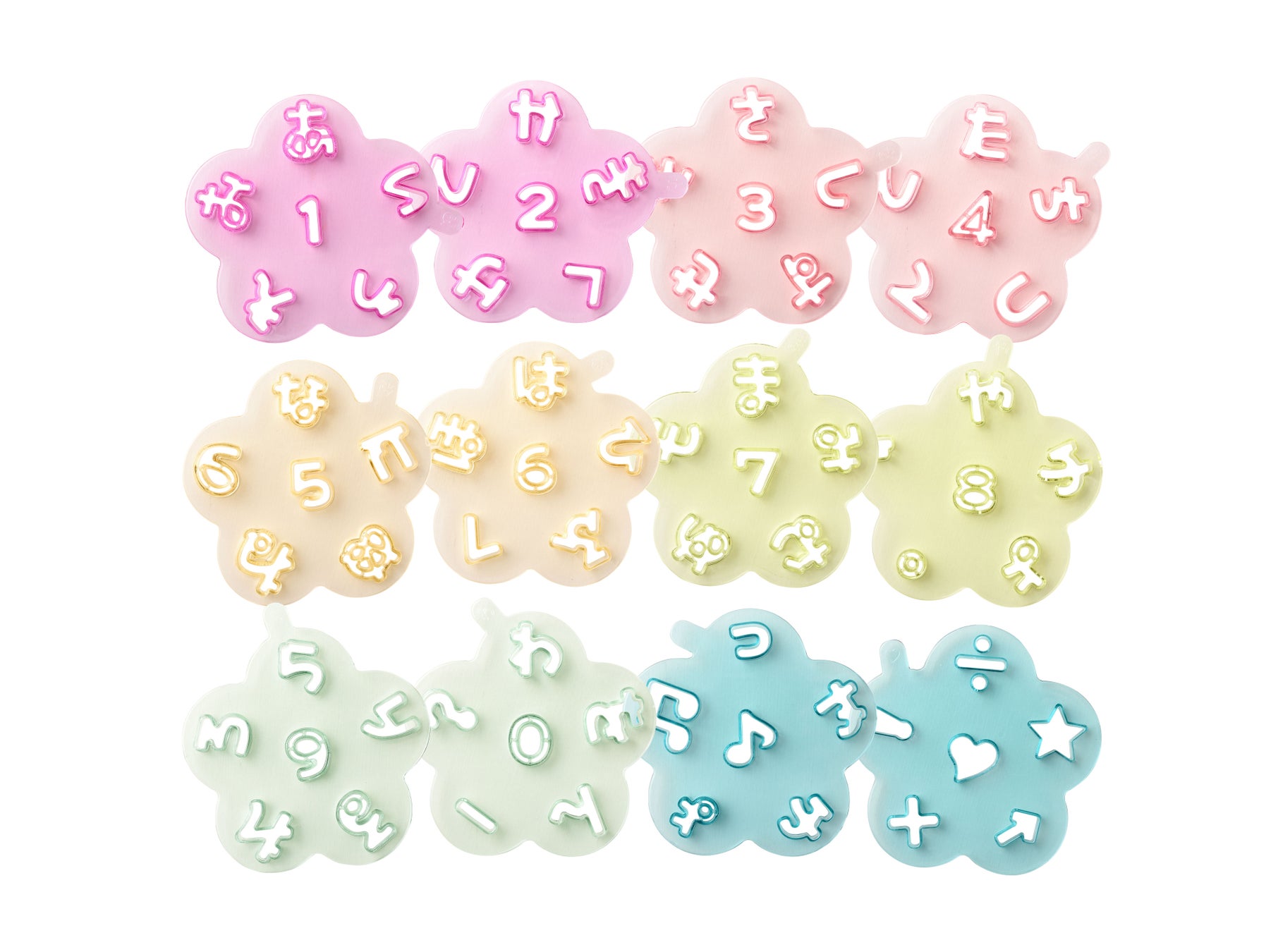 「な」「お」などのパーツが分かれてしまう文字は飾りつけしやすくするため、1パーツになるよう設計しました。バラけないのでデコ弁初心者さんも配置がしやすい!