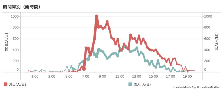 可視化されるOD量は平休日別の1日平均で、15分単位に細分化可能 |