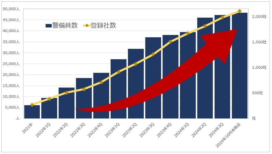 コロナ禍を経て、花火大会やスポーツ観戦など各種イベント開催が復活するなど、人流が活発化して個人消費とインバウンド需要が回復した影響で警備ニーズが日に日に高まっております。また昨今頻発している自然災害などによる復旧作業にも警備員が必要とされております。さらに直近では、闇バイトにまつわる凶悪な強盗事件の影響から個人での利用も急増しております。しかし一方では、請負える警備会社を探すのも困難であり、特に個人のお客様はどこに依頼して良いのか分からないのが実情です。