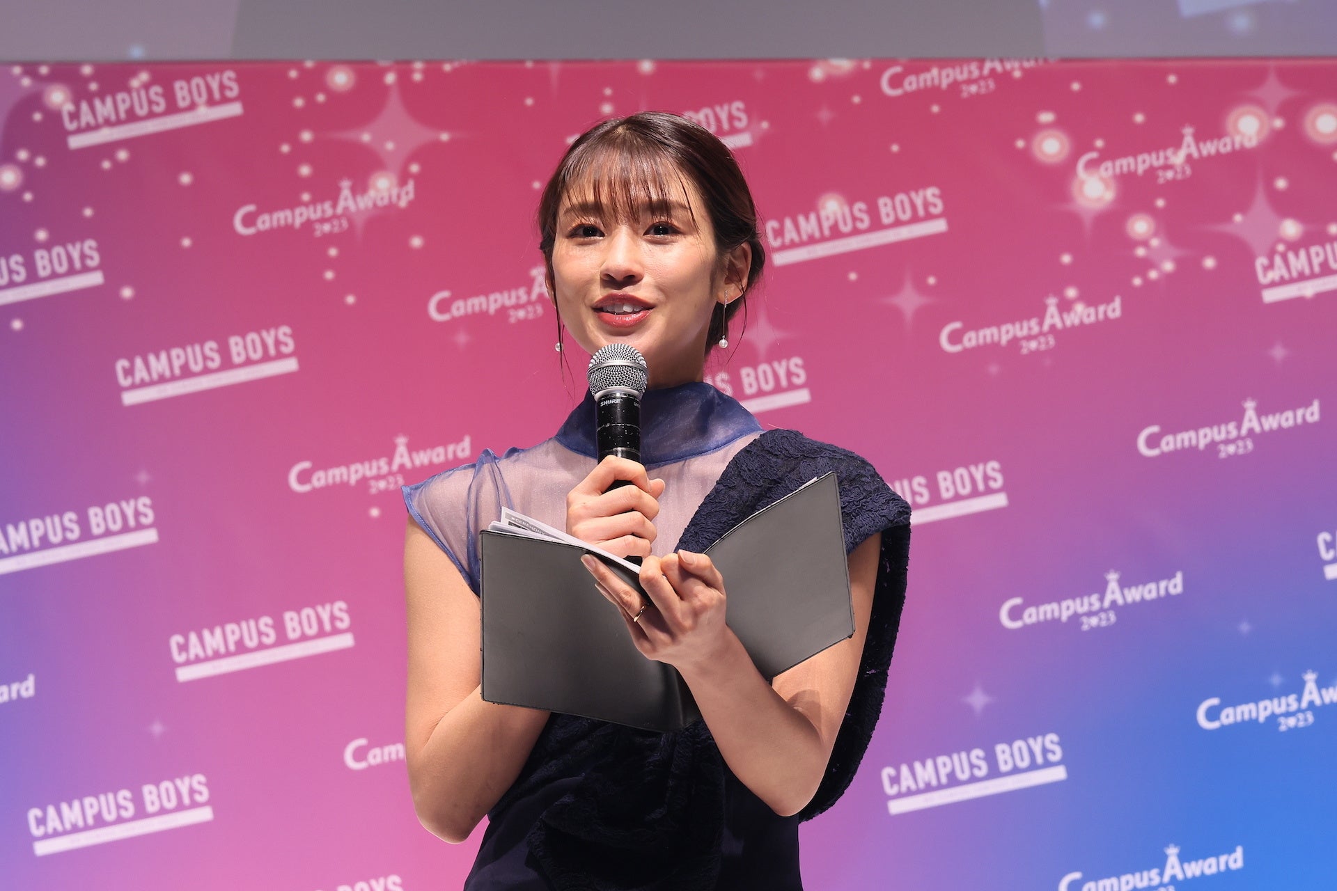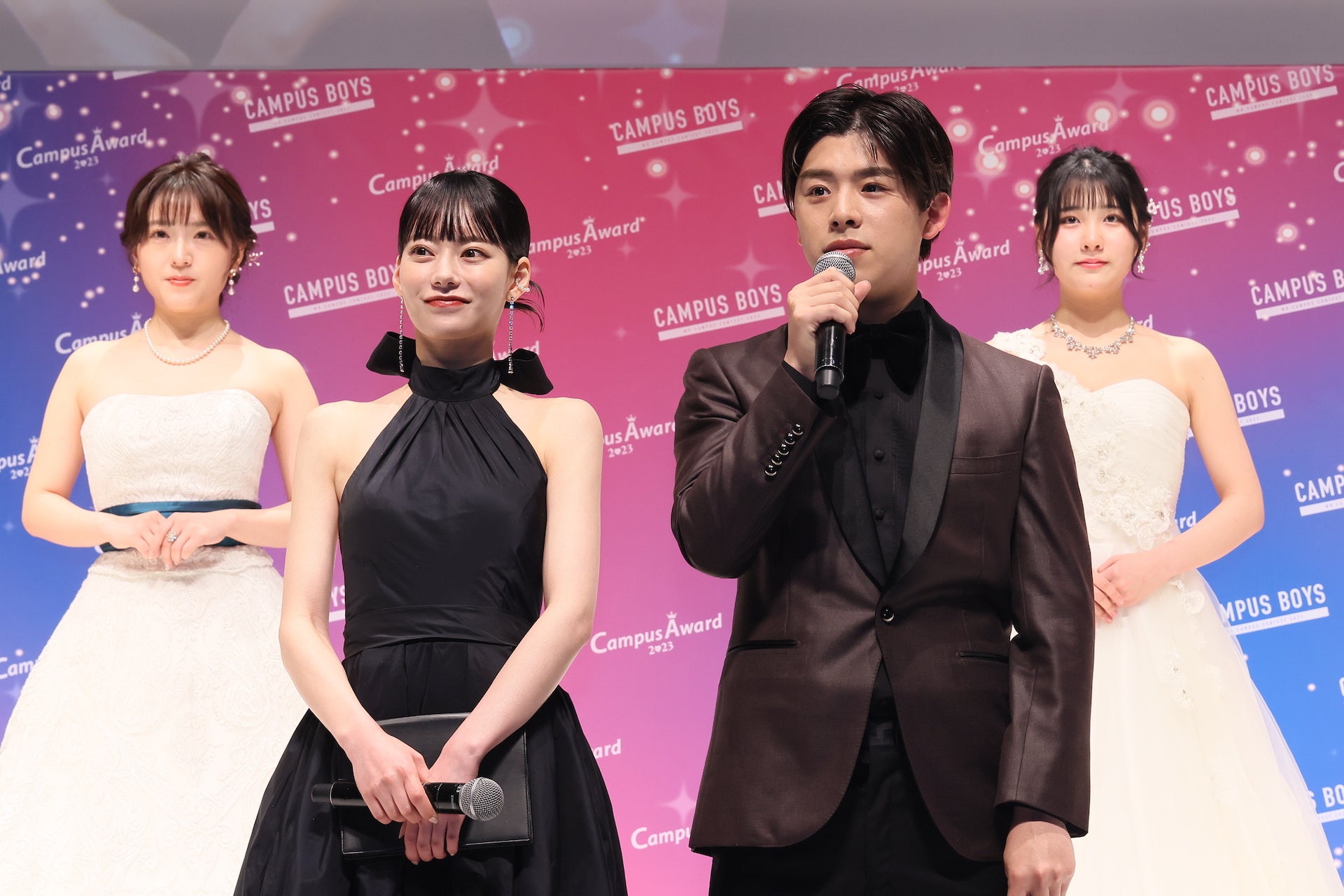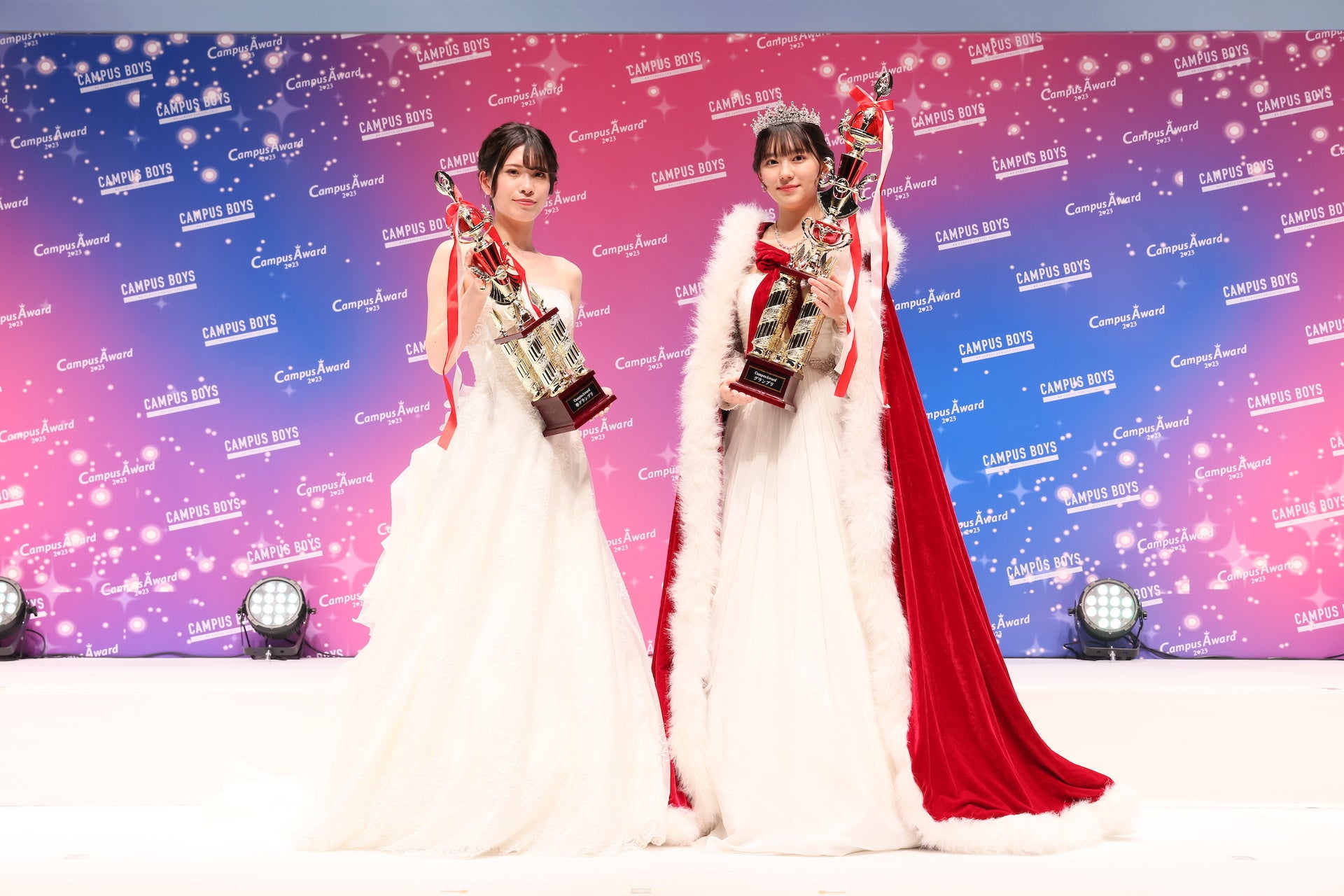 表彰式ではゲストMCのこーくんと応援アンバサダーのなごみさんのプレゼンターのもと「CampusAward2023」【グランプリ】にぽんずさんが選ばれ、ガウンとティアラ、トロフィーが授与されました。ぽんずさんは【ミクチャ賞】にも選ばれダブル受賞となりました。ぽんずさんは「今頂いたトロフィーとガウンとティアラでグランプリを実感しています。とても嬉しい気持ちと感謝の気持ちでいっぱいです。グランプリからの景色をみなさんと一緒に見ること、最高に輝いている自分を見てもらうことを目標に頑張ってきたので、ここまで応援してくださったみなさんと一緒に受賞できたグランプリだと思っています。本気の私を本気で応援してくれてありがとうございました。みなさんへの感謝を胸にグランプリを噛み締めたいです。」とCampusAwardへの想いや応援してくれた方への感謝を語りました。グランプリには、賞金200万円、「GirlsAward」ランウェイ出演権、有名雑誌掲載権など豪華特典が贈られました。ぽんずさんの憧れの人はなごみさんと公言し、写真撮影の時にはこーくんから「似てる!姉妹みたい!」と笑いを誘いました。