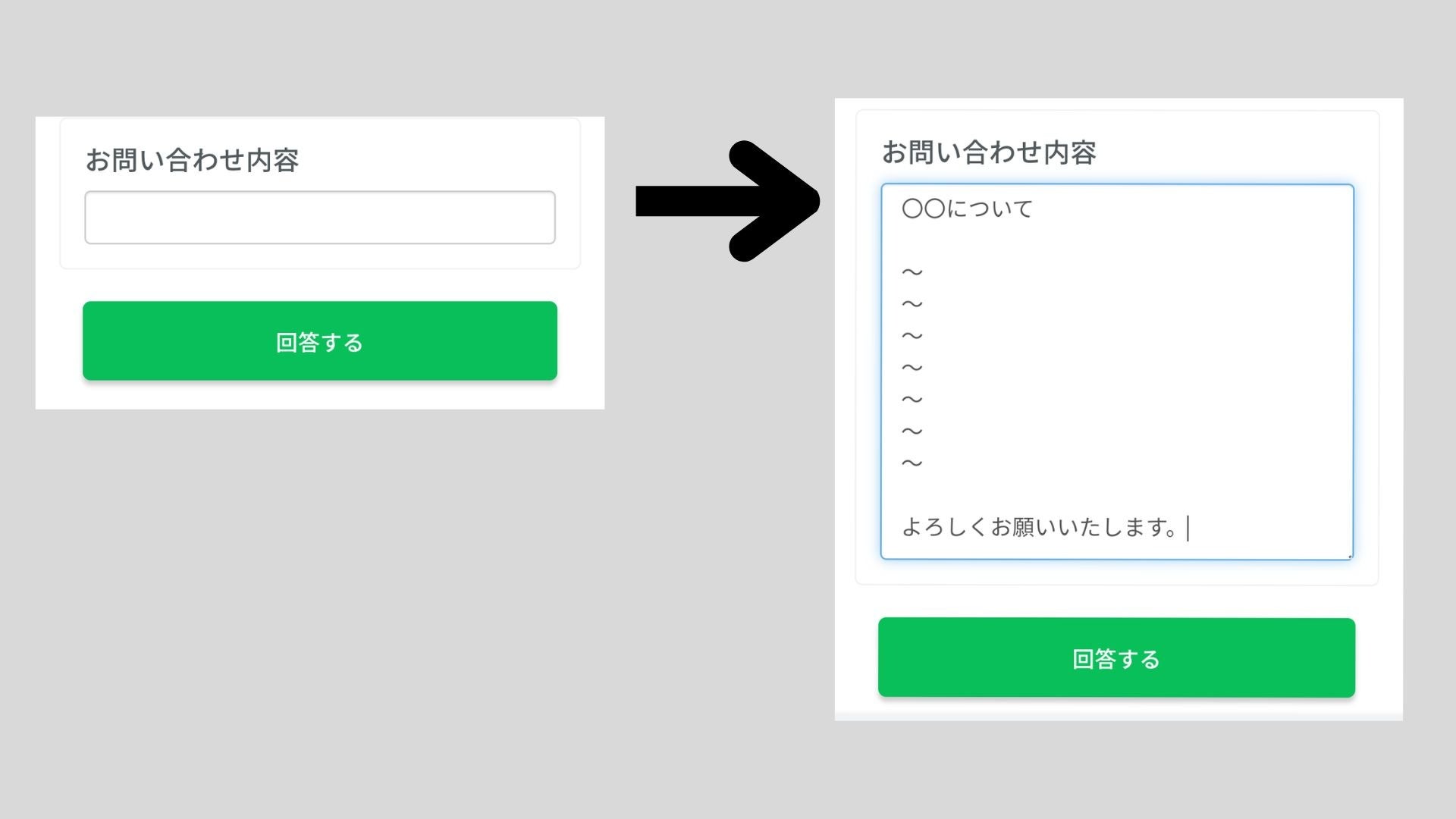 アップデートにより、回答フォームの自由記述の枠が文字数に応じて自動で拡大するようになりました。