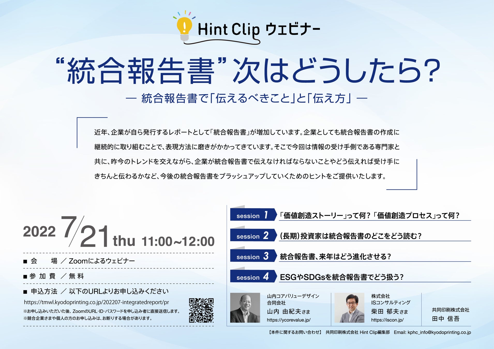 すでに統合報告書を制作されている企業さまにとって、今後の統合報告書をブラッシュアップしていくためのヒントになるセミナー内容になっています。ぜひご参加ください。