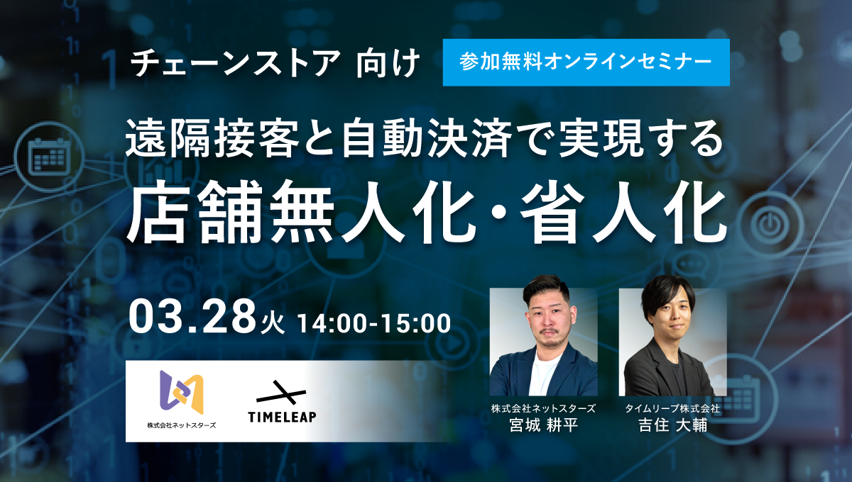 【タイムリープ×ネットスターズ】店舗無人化・省人化ノウハウを紹介するオンラインセミナーを開催