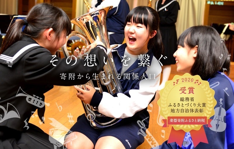 通常のふるさと納税と違い、本制度には「返礼品」と呼ばれるものがなく、児童・生徒たちからの「感謝の手紙」や演奏会へのご招待等が届きます。返礼品目的ではなく純粋に応援する想いから生まれる楽器寄附は「ふるさと納税の本質を捉えた制度」として、2020年度には「総務省ふるさとづくり大賞 地方自治体表彰」もいただきました。