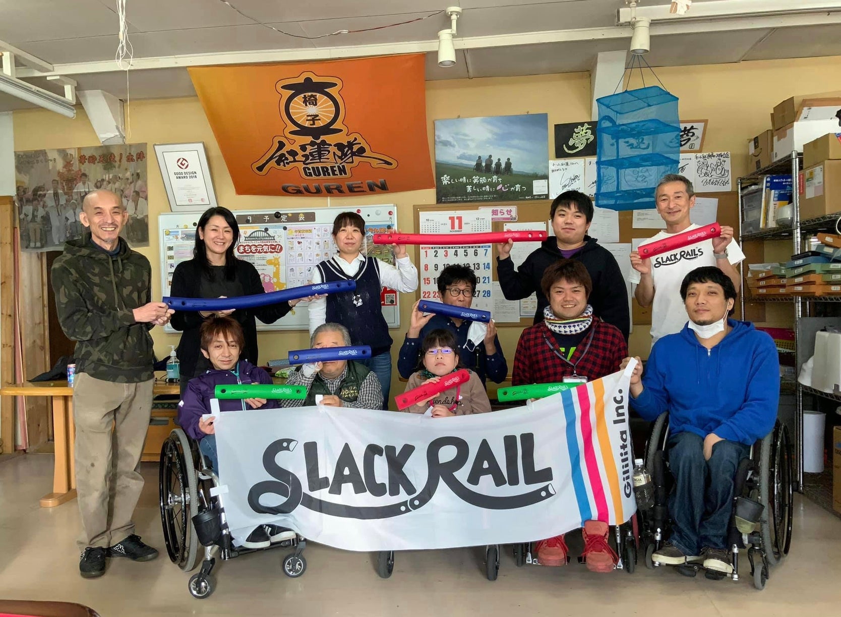 当社では、商品のロゴ印刷や梱包作業を自社でも行っておりますが、障がいのある方々と共に製造に携わる環境づくりの一環として、仕事のシェアにも取り組んでいます。そうしたご縁から、カムイ大雪バリアフリー研究所と出会い、現在 スラックレールの姉妹商品「ユビスラ」 は、ほぼ100%旭川の皆さんの手によって製造されています。