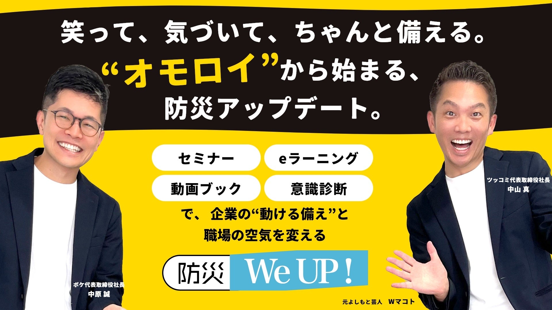 吉本お笑い総合研究所出身・防災士資格も持つ元芸人社長コンビ「Wマコト」(中山 真・中原 誠)が社長を務めるCLASSIX株式会社(本社:大阪府大阪市)は、災害時に“本当に動ける組織”を育てるための実践型防災ラーニングプログラム「防災We UP!」を始動いたします。