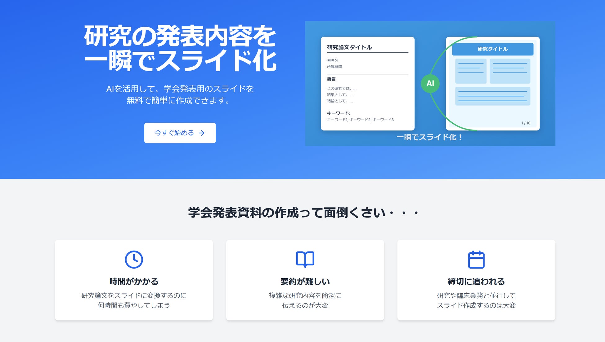医師の学会発表準備が激減!AIが自動でスライド作成する無料サービス開始