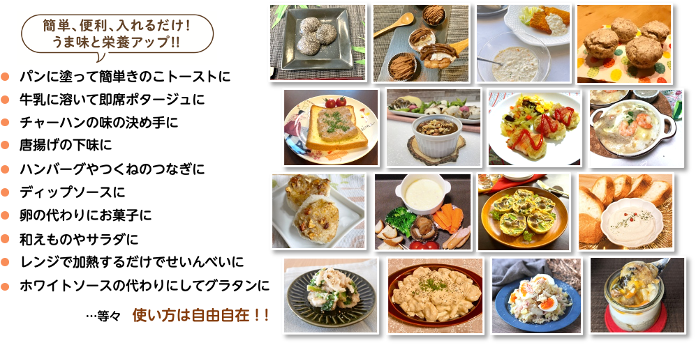これまできのこが不得意だった方や、きのこを使えなかった料理にも、食卓以外の場所でも、簡単にきのこの栄養素を取り入れて頂けるように、ホクトが考案した「きのこペースト」。きのこのうま味と栄養をお手軽に味わえて、様々な料理に活用できます。