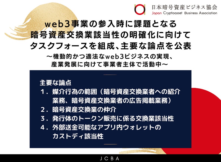 web3事業の参入時に課題となる暗号資産交換業該当性の明確化に向けてタスクフォースを組成、主要な論点を公表