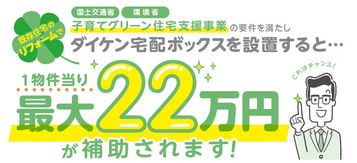ダイケン宅配ボックスが『子育てグリーン住宅支援事業』の補助金対象製品に認定