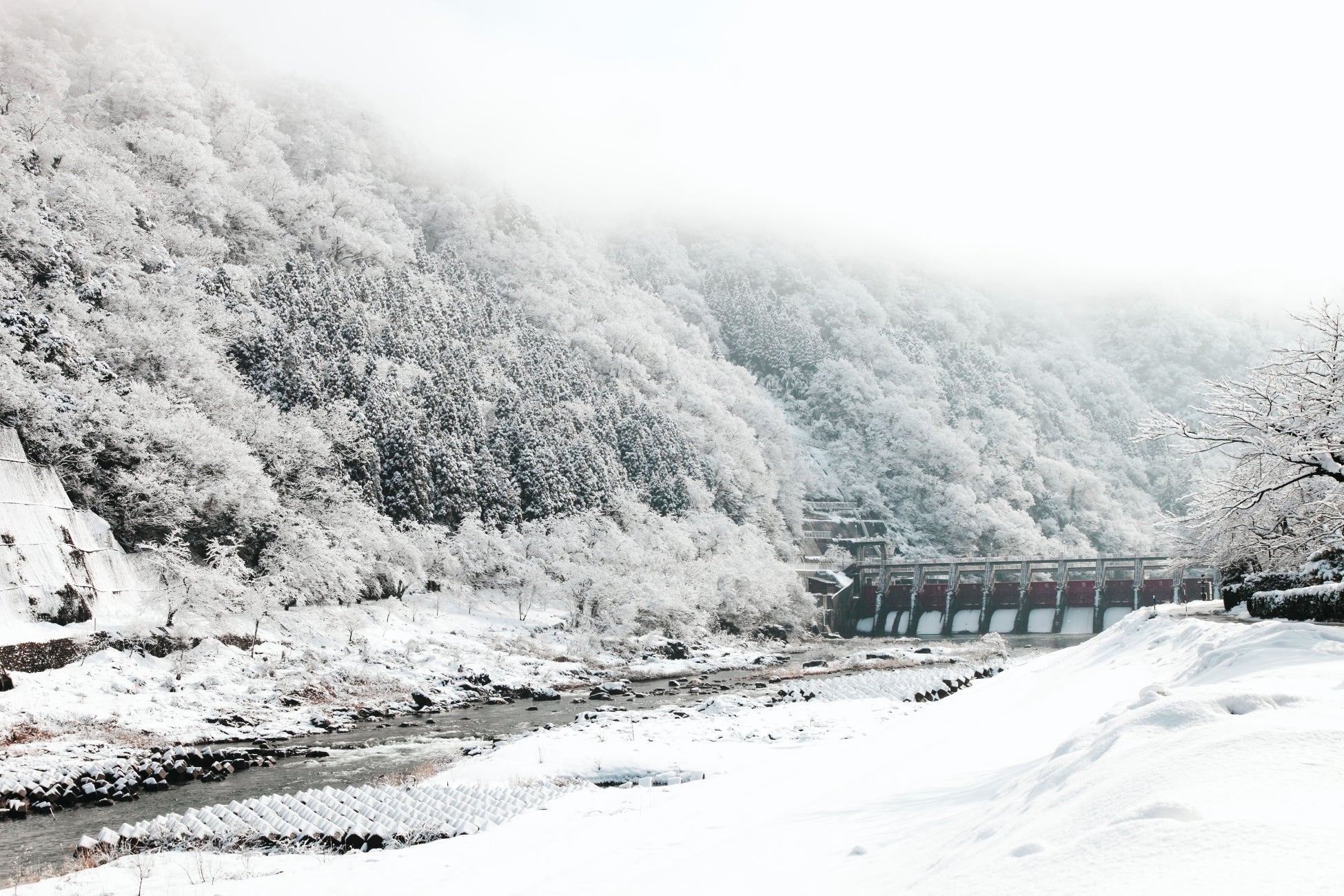 庄川の冬の絶景を望むサウナ、サウナ後は旅館ゆめつづり自慢の温泉、ランチには庄川の食材を使用したコースをペアリングドリンクと共に召し上がっていただけます。