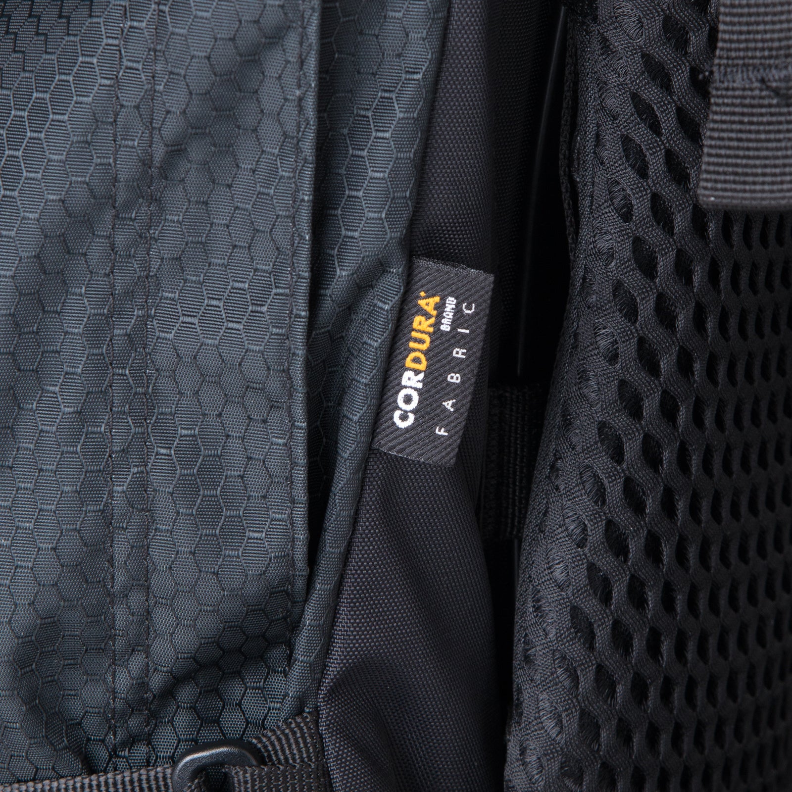 ボトムやフロント面は擦れを考慮し、より耐久性の高い420Dナイロン生地、雨蓋や側面は軽量性も考慮した210Dミニリップストップナイロン生地を採用。2種類の生地をバランス良く配置。