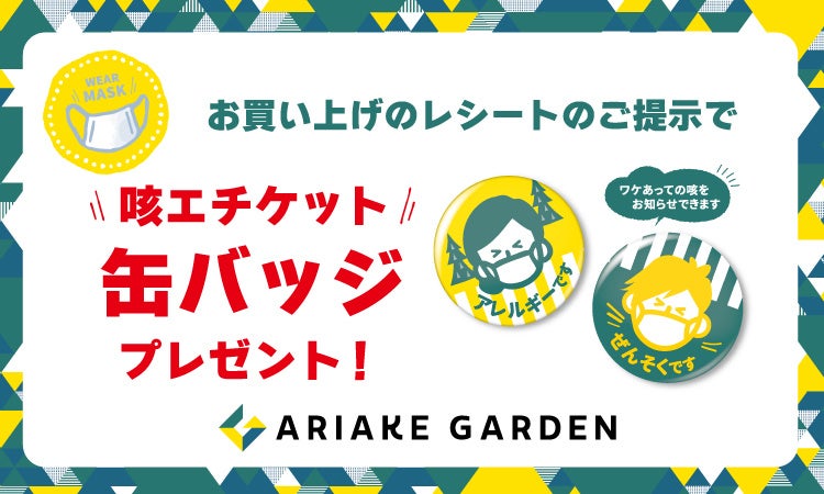 住友不動産商業マネジメント株式会社(本社:東京都新宿区 代表取締役社長:山本 直人)は、運営する複合商業施設「有明ガーデン」(所在:東京都江東区)において、3/18(金)より『咳エチケット缶バッジ』プレゼントキャンペーンを開始いたします。