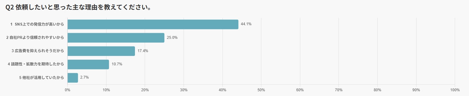 全体として、依頼理由の上位には“拡散力”と“信頼性”という二つのキーワードが並びました。