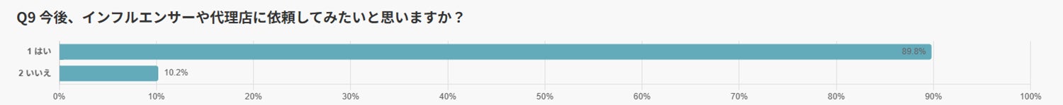 調査の締めくくりとして、「今後、インフルエンサーや代理店に依頼したいと思うか」を尋ねたところ、57.9%が「依頼したい」と回答しました。