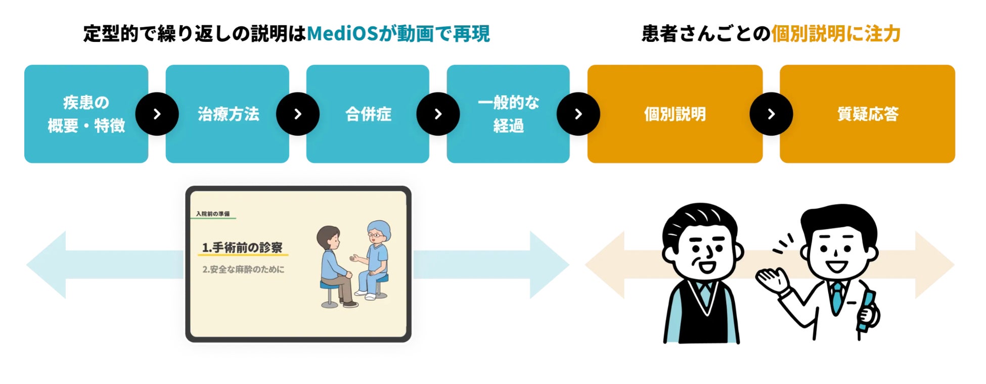 MediOSは、説明動画をはじめとした、デジタルでの患者さんコミュニケーションの業務改善を通じて、医療者が本質的な業務に専念できる環境への実現を支援してまいりました。