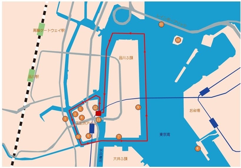 乗船/下船場所:天王洲運河 東品川2丁目防災桟橋