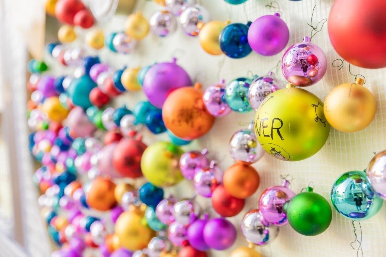 プレゼントBOXを包む大きなリボンは、クリスマスの日が近づくにつれ、願いの込められた色とりどりのオーナメントで虹色に輝きます。